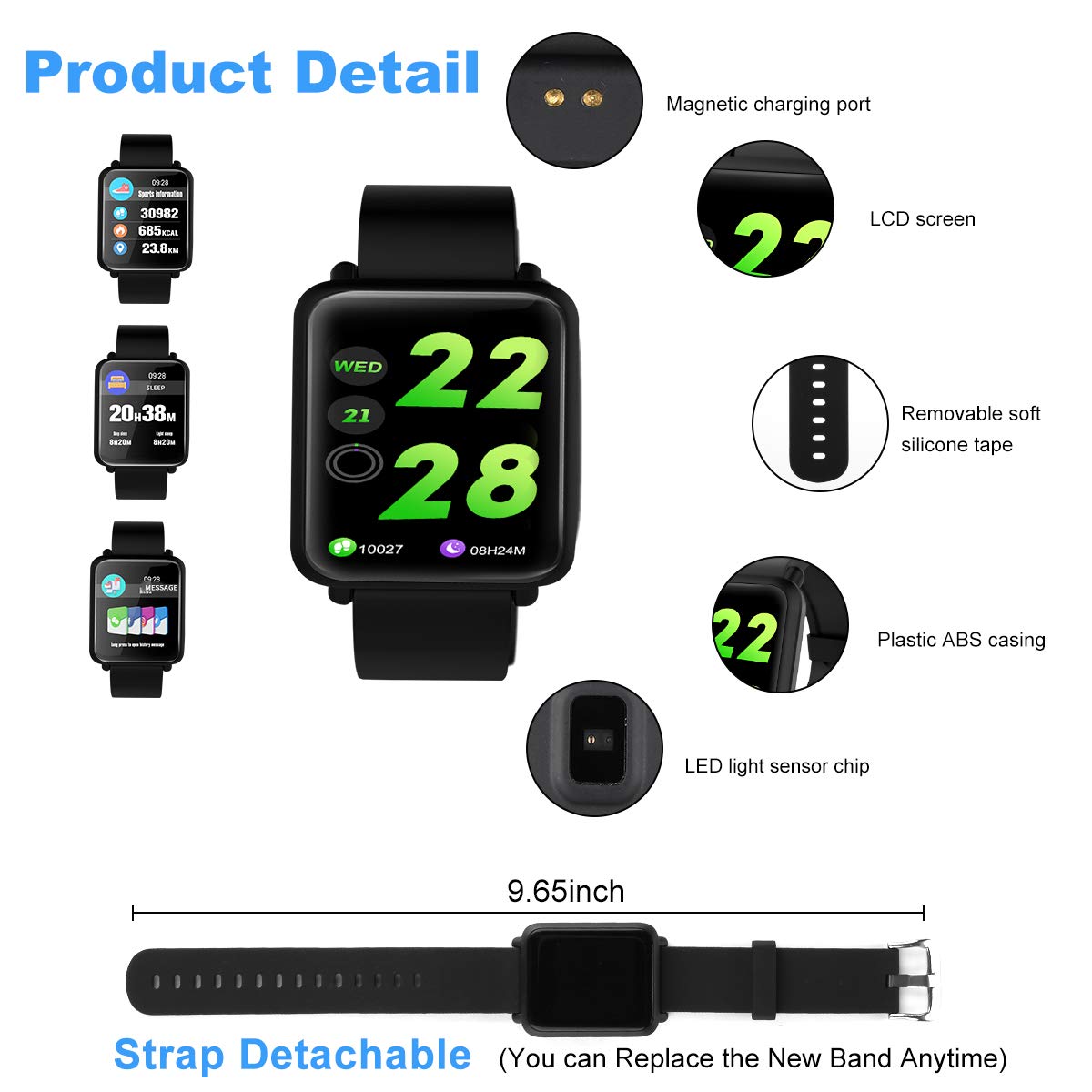 ★Heart Rate, Blood Pressure&Sleep Monitor: The activity fitness tracker can be used to track your daily heart rate & blood pressure, accurately record all-day activities like steps, distance, calories burned, active minutes. Fitness watch is good for you to disease the risk of cardiovascular to know to the fatigue. Also, the smartwatch monitor total effective sleeping time and motions every night, you can better understand your sleeping quality during deep sleep, light sleep, and awake sleep.