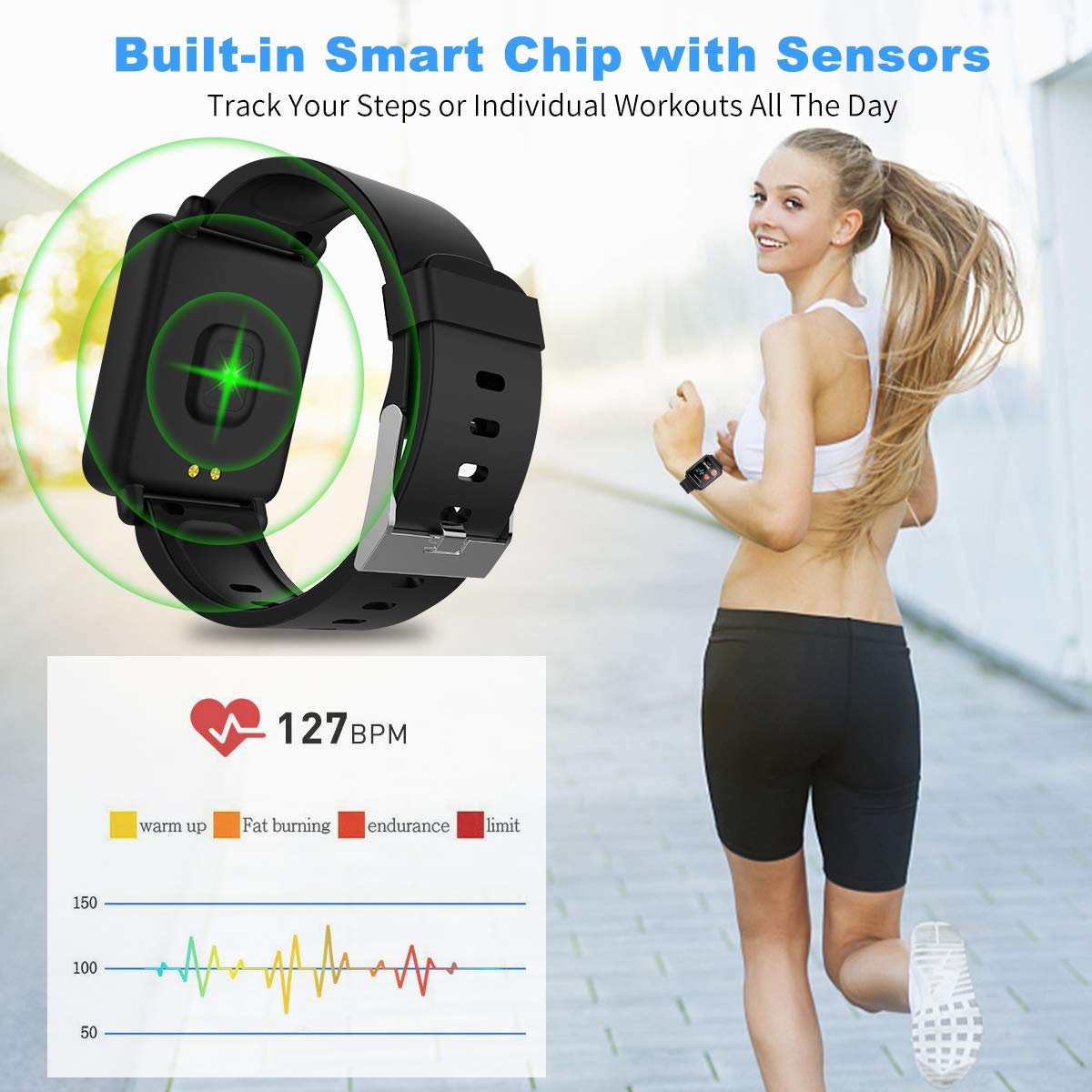 ★Long Battery Life&Broad compatibility: Fitness tracker smart watch built-in 180 mah battery that can work for 7 days. Various sports modes are available for you to choose, such as swimming, running, football, basketball, cycling, etc. This fitness watch can support most Android and IOS phone( Phone XS Max XR X 8; Phone 7/7 Plus; Phone 6/6s Plus, Samsung Galaxy: S9,S8, S8 Plus, S7, S7 Edge, S6, S6 Edge, S5, S4, S3, Samsung Note: 10,9,8,7,6,5,4, 3,2, SONY, HTC, Huawei, Xiaomi etc .